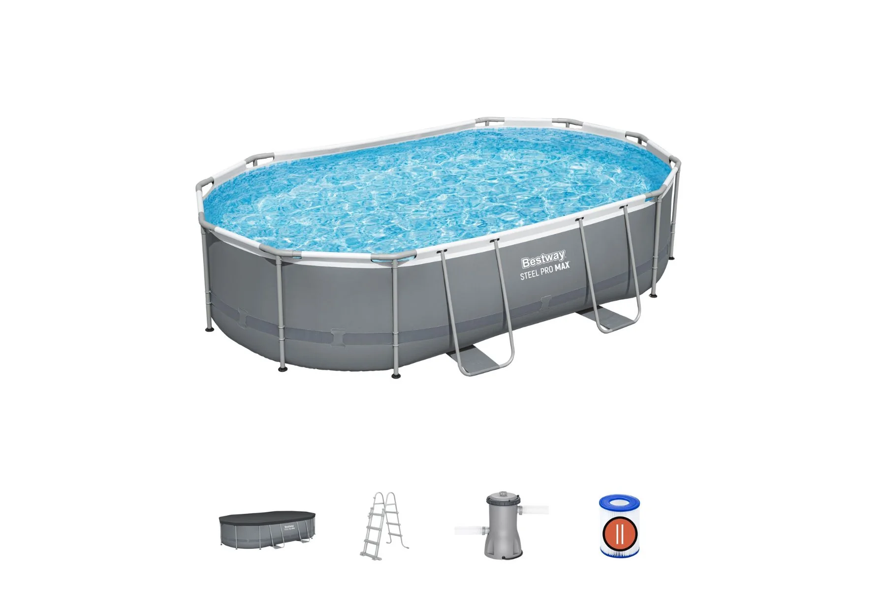 16ft x 42in Dark Grey Oval Power Steel Above Ground Pool Set
